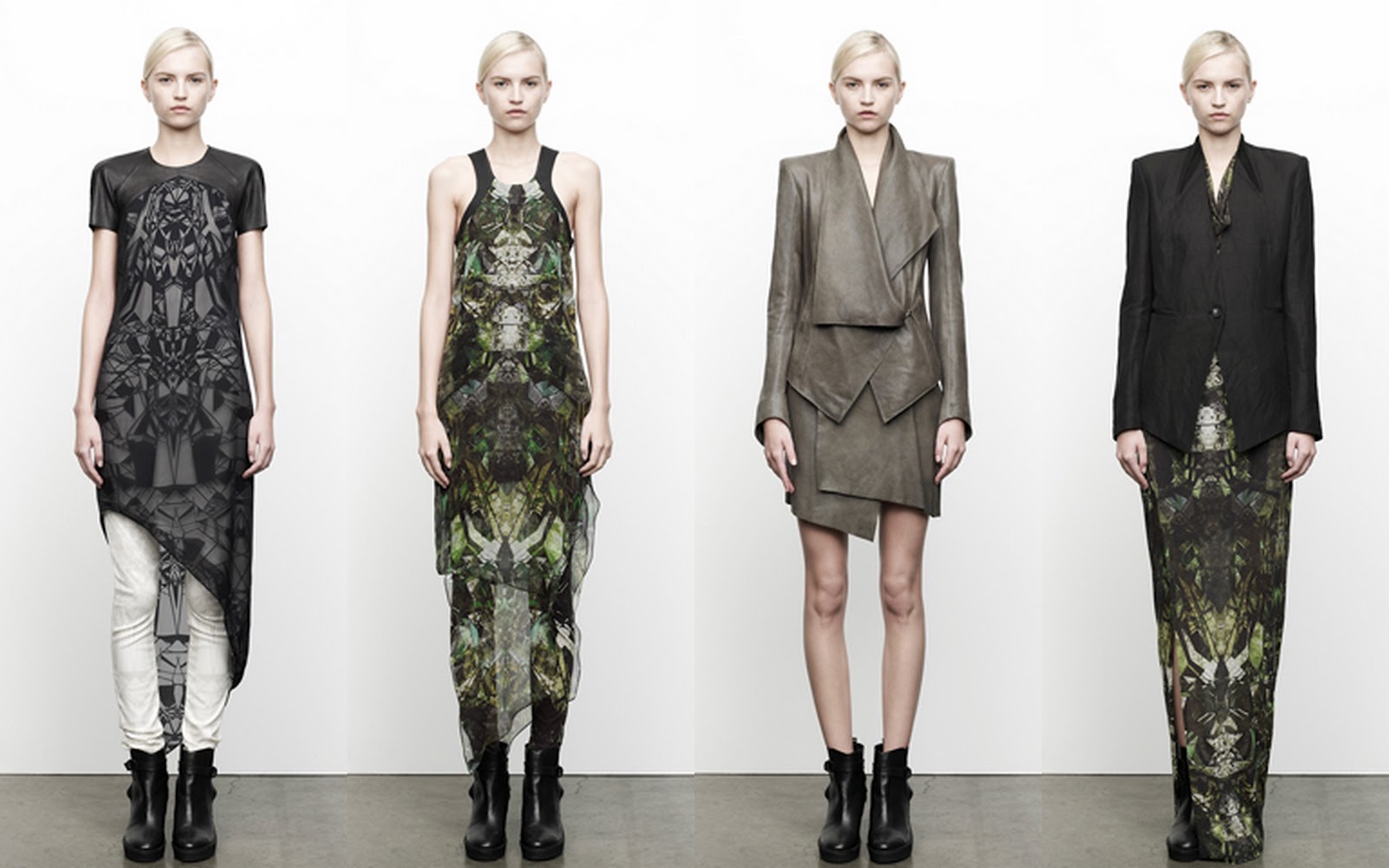 Helmut Lang - epäsymmetrisiä helmoja, laskeutuvia nahkatakkeja, printtejä ja ripaus limenvihreää